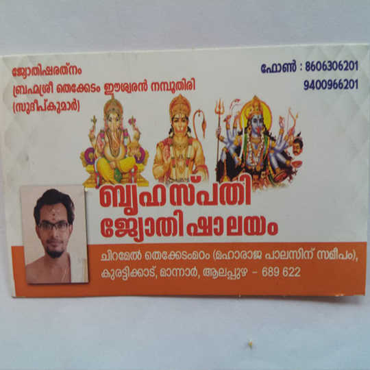 Jyothisha Rathnam Brahmashri Thekkedam Eswaran Nampoothiri offers divine astrology and rituals for lasting solutions. Seek guidance at Brihaspati Jyotishalayam for clarity and peace.