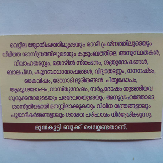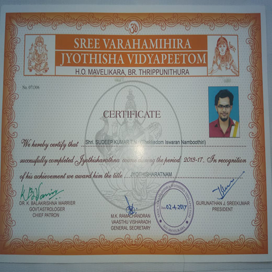 Jyothisha Rathnam Brahmashri Thekkedam Eswaran Nampoothiri
