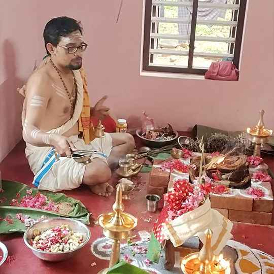 At Brihaspati Jyotishalayam, he offers guidance for various life challenges, including career obstacles, family disputes, marriage delays, enemy afflictions, child-related issues, negative energies, and health-related difficulties. His remedies are rooted in powerful astrological traditions and spiritual rituals. He specializes in conducting sacred rituals such as: Ashtadravya Maha Ganapathi Homam for prosperity and obstacle removal, Maha Mrityunjaya Homam for health and longevity, Sarpa Bali and Poojas for alleviating serpent dosha, Sudarsana Homam to appease ancestors and bring peace, Tripurasundari Ashwarudha Poojas for career and financial stability.